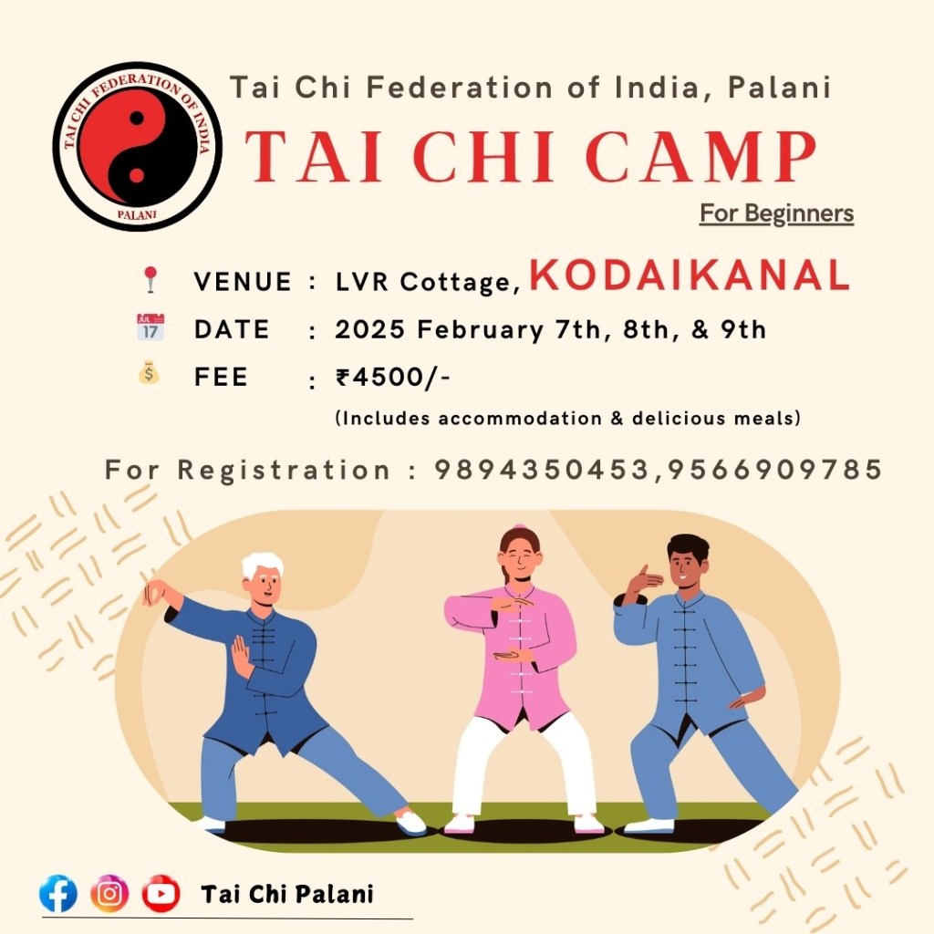 Tai Chi Training Camp is going to be held on 7th, 8th & 9th February 2025 at LVR Cottage, Kodaikanal (near bus stand). LVR Cottage